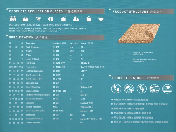 凱立龍蒙哥馬利地板系列 具(ju)(ju)有(you)抗菌和防霉的(de)(de)特(te)點,同時(shi)不含甲醛(quan)等有(you)害物質,是非(fei)常環保的(de)(de)產(chan)品。該地板符(fu)合EN 469{34-43} 項規定,其耐(nai)磨性達到 的(de)(de)T 標(biao)準,該產(chan)品具(ju)(ju)有(you)翻新(xin)功能,表面打磨拋光后紋理不變,適合于人流量大的(de)(de)地方使(shi)用。