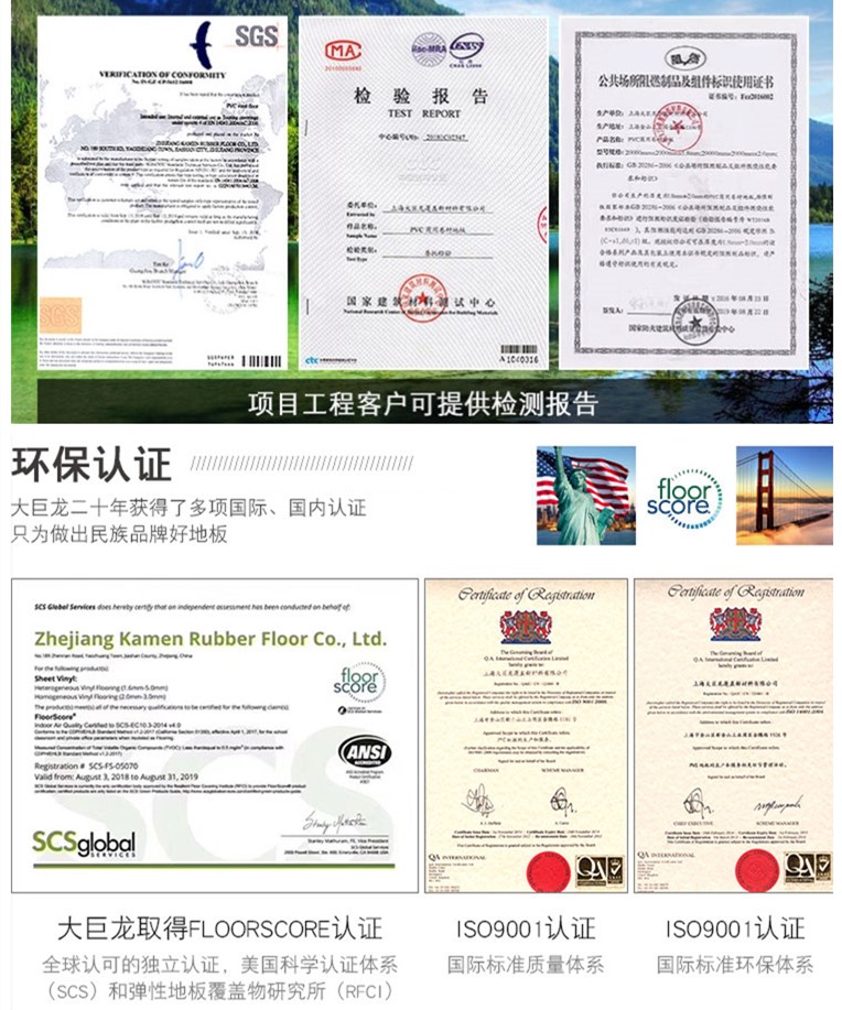 1.抗菌(jun)環保,防水防潮; 2.耐磨性(xing)強,耐污性(xing)佳; 3.富有(you)彈性(xing),腳踏(ta)感好。