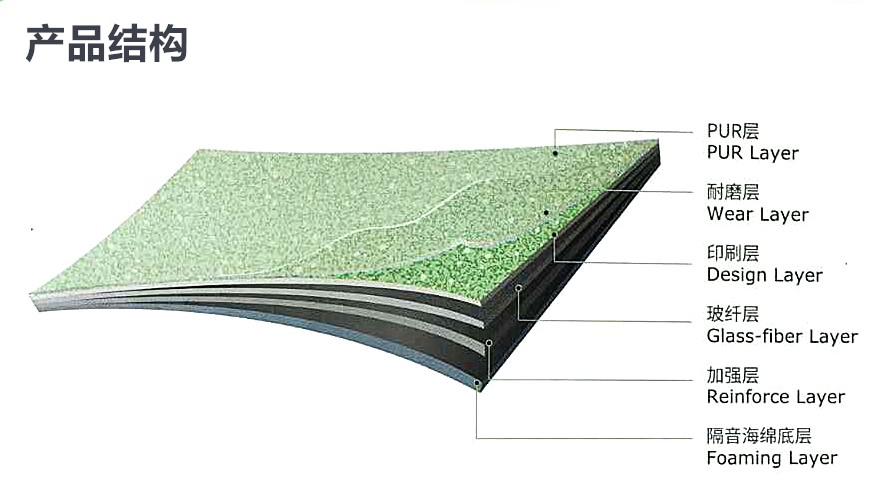 Product properties: high thickness pure PVC wear-resisting layer, wear-resisting and durable, long service life, excellent resilience of high resilience foam backing layer, high density glass fiber stable layer can avoid thermal expansion and cold shrinkage. The special surface UV treatment process is easy to clean, does not need wax treatment, and has strong color plasticity. No heavy metal materials, no formaldehyde, no radiation on human health will not cause any harm, very environmentally friendly.